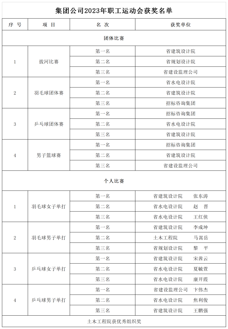 集團公司黨委副書記王春燕在閉幕式上向獲得優異賽績的代表隊、運動員表示熱烈祝賀,向運動會的組織者、工作人員表示衷心的感謝。她指出,此次運動會弘揚了“更高、更快、更強、更團結”的奧林匹克精神,發揚了不怕吃苦、奮發向上、勇于拼搏的企業文化精神,增進了集體榮譽感,增強了集團公司的凝聚力、向心力。賽出了風格,賽出了友誼,賽出了水平。希望廣大干部職工以飽滿的熱情拼搏攻堅、以昂揚的斗志奮力工作,在中國式現代化甘肅實踐中挺膺“甘咨詢”擔當,貢獻“甘咨詢”力量!