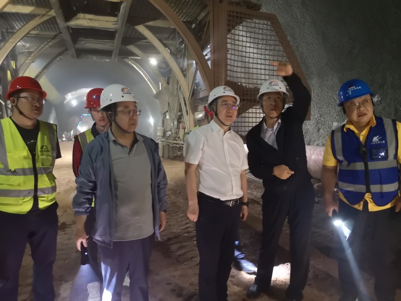 白鑫一行深入工程施工現場及項目駐地,詳細查看了董嶺一號隧道900米處掌子面安全生產情況,檢查了項目駐地檢測試驗室操作規程、工藝流程落實情況及危化品貯存使用情況,了解了工作人員生產、生活保障情況,聽取了總監辦工作匯報。