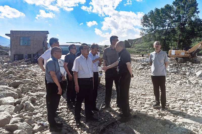 8月11日,甘肅工程咨詢集團黨委書記、董事長張佩峰,總經理、董事陳一夫率隊深入榆中縣小康營鄉(xiāng)南北關村、馬坡鄉(xiāng)馬蓮灘村等洪澇重災區(qū),全面督導災害評估和災后重建技術咨詢服務工作。副總經理曹慶,黨委委員、副總經理賈志堅參加。