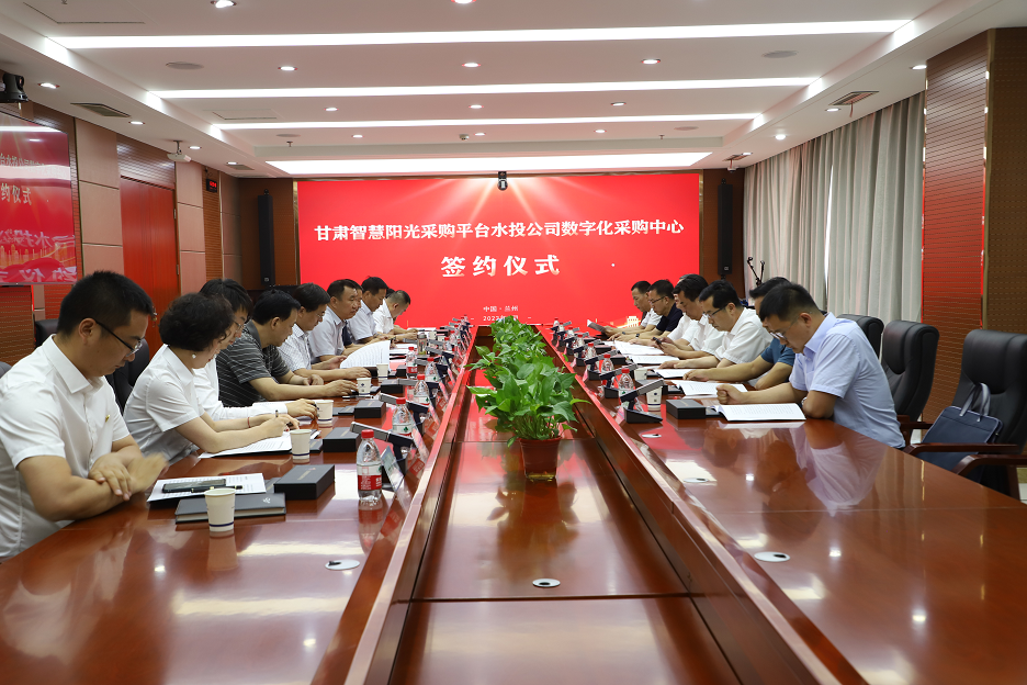 7月6日下午,甘肅省招標(biāo)咨詢集團(tuán)有限責(zé)任公司與甘肅省水務(wù)投資有限責(zé)任公司舉行甘肅智慧陽光采購平臺(tái)水投公司數(shù)字化采購中心簽約儀式。甘肅水務(wù)集團(tuán)黨委書記、董事長徐崇鋒,招標(biāo)咨詢集團(tuán)黨委書記、董事長牛茺出席簽約儀式并致辭。甘肅水務(wù)集團(tuán)黨委副書記、董事、總經(jīng)理汪棟與招標(biāo)咨詢集團(tuán)黨委副書記、總經(jīng)理孫有仙代表雙方簽約。甘肅水務(wù)集團(tuán)黨委委員、副總經(jīng)理王玉和,招標(biāo)咨詢集團(tuán)黨委副書記、監(jiān)事會(huì)主席、工會(huì)主席巨有成,黨委委員、紀(jì)委書記鄭志峰,黨委委員、副總經(jīng)理李蘭軍,甘肅水務(wù)集團(tuán)及招標(biāo)咨詢集團(tuán)相關(guān)部門負(fù)責(zé)人參加簽約儀式。