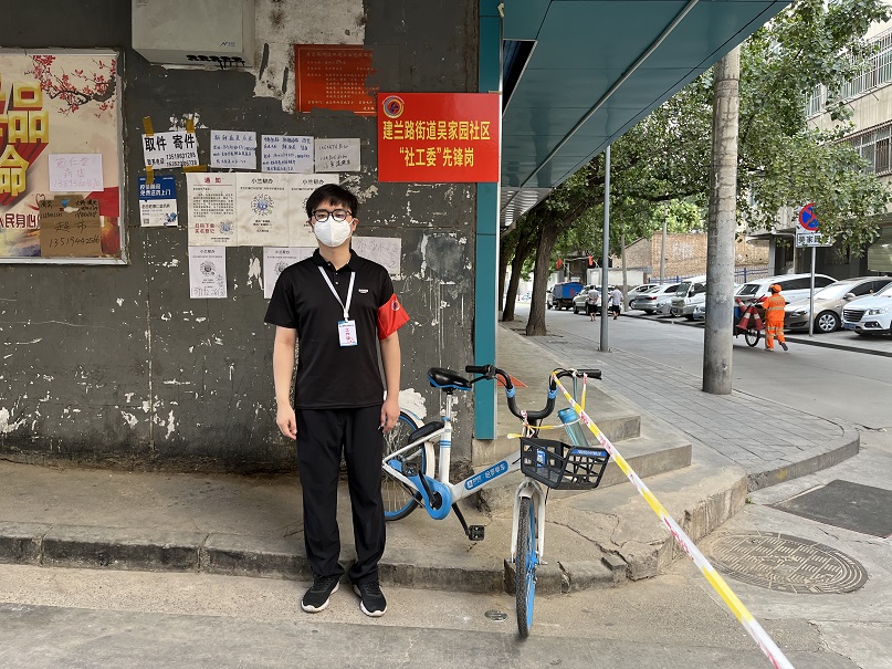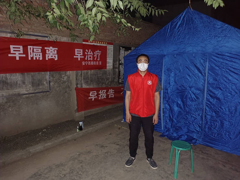 “你好,請問你怎么了,需要去醫院?請稍等一下,我聯系下社區和醫院陪你去。”這是志愿者秦彬夜間值班時碰到急需就醫居民時的對話,最后看到居民得到及時醫治,他才松了一口氣。疫情期間,秦彬在老舊管控小區進行夜間值班,防止人員出入,減少疫情傳播,在此期間他經歷了不少的挑戰。值班區沒有電,也沒有相應生活設施,他每晚都與大批蚊子“共舞”;在狂風暴雨的夜晚,由于僅有的帳篷被大風吹走,他冒雨緊急加固,最后都成了“落湯雞”。盡管困難重重,但秦彬一直堅守崗位,勇敢擔當,為自己在抗疫中能夠貢獻自己的一份力量覺得欣慰,他說:“看到確診人數每天都在下降,距離勝利的時候不遠了,我深深地感到,人民群眾的生命安全才是最重要的,沒有什么困難挺不過去,也沒有什么困難戰勝不了”。