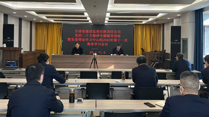 11月8日,甘肅省建設監(jiān)理有限責任公司召開2022年黨委理論學習中心組第十一次集體學習(擴大)會議,邀請省委黨校李景銘教授作黨的二十大精神專題輔導講座。會議以“線上+線下”形式召開,黨委書記、董事長魏和中主持,領(lǐng)導班子成員、中層干部參加。