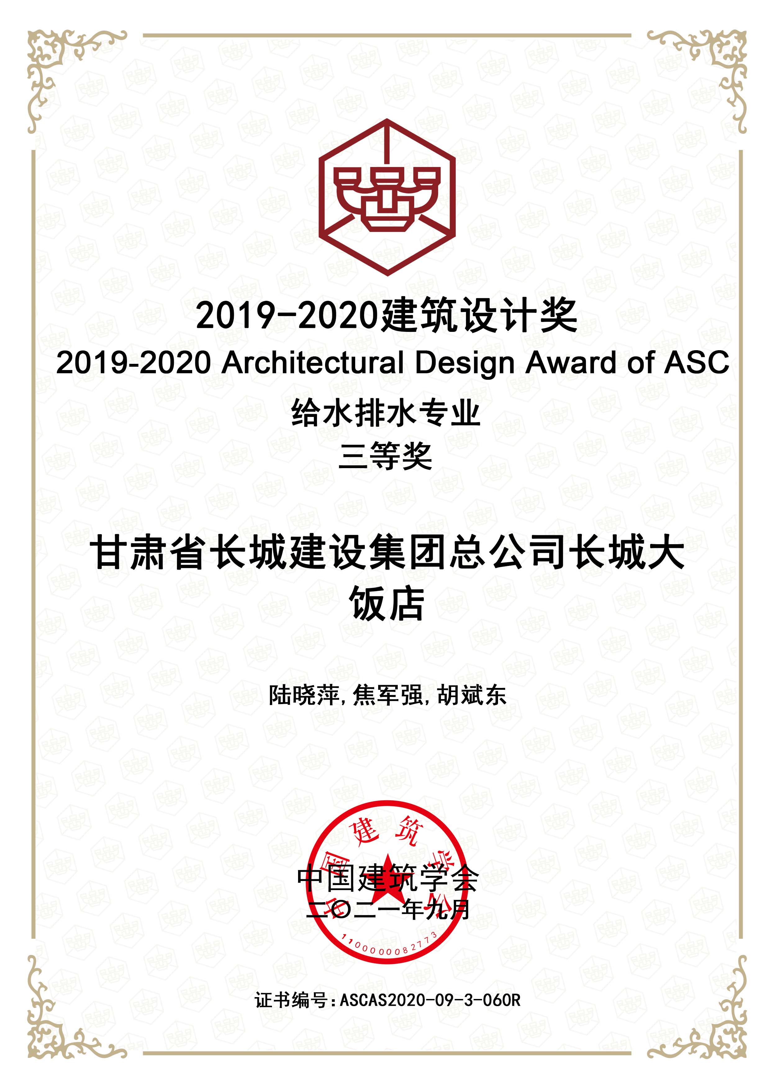 2019—2020建筑設(shè)計(jì)獎(jiǎng)給排水專(zhuān)業(yè)三等獎(jiǎng)